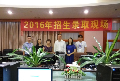 录取时代,,,董事长廖榕就博士,,,学院院长陈玉川教授亲临录取现场巡视。。董事长廖榕就博士慰问了录取事情职员并作主要指示,,,要求加入招生事情职员坚决执行国家教育部、、广东省教育考试院有关政谋划定,,,落实“阳光招生”政策,,,为学院选拔好人才。。院长陈玉川教授听取录取事情安排及希望汇报后,,,要求加入招生事情职员做好录守信息清静包管事情,,,保质保量完成招生使命,,,还要求各人做好考生信访及信息公开事情,,,热情为考生及家长服务,,,确保圆满完成今年的招生录取事情。。